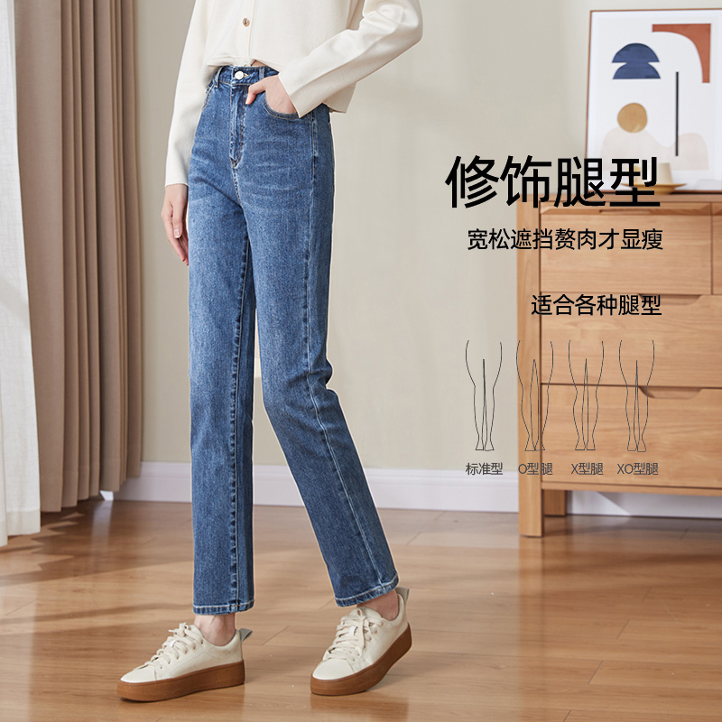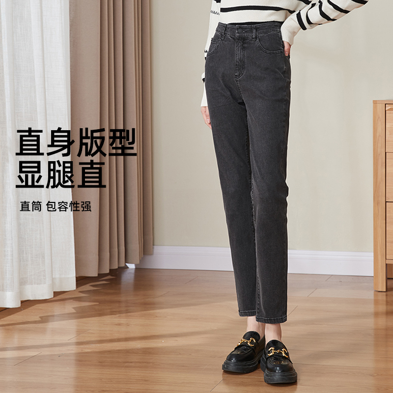 弹力高腰显瘦小个子法棍烟管裤 逸阳女裤 秋款 清仓直筒牛仔裤 子 断码