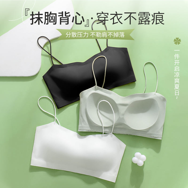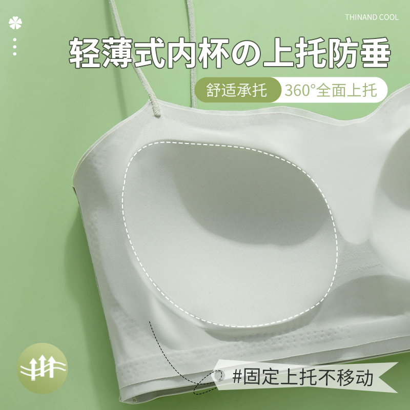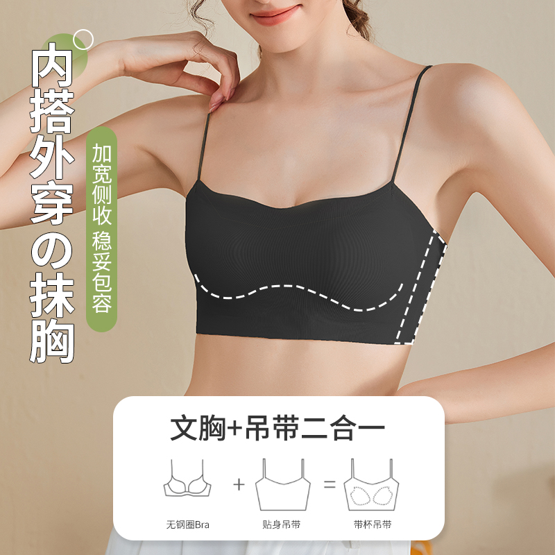 裹胸防走光文胸罩 细肩吊带一体运动背心式 美背抹胸内衣女夏季 薄款