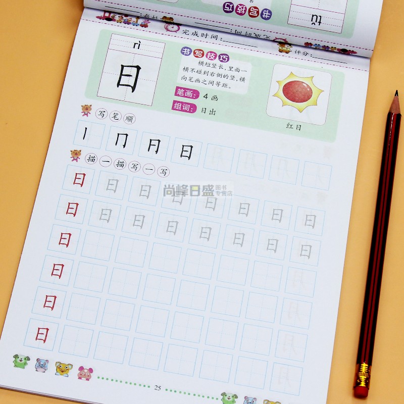 幼儿园描红本练字帖 配视频中大学前班笔画偏旁笔顺数字描红写字口算题卡10以内加减法20以内加减法拼音汉字描红