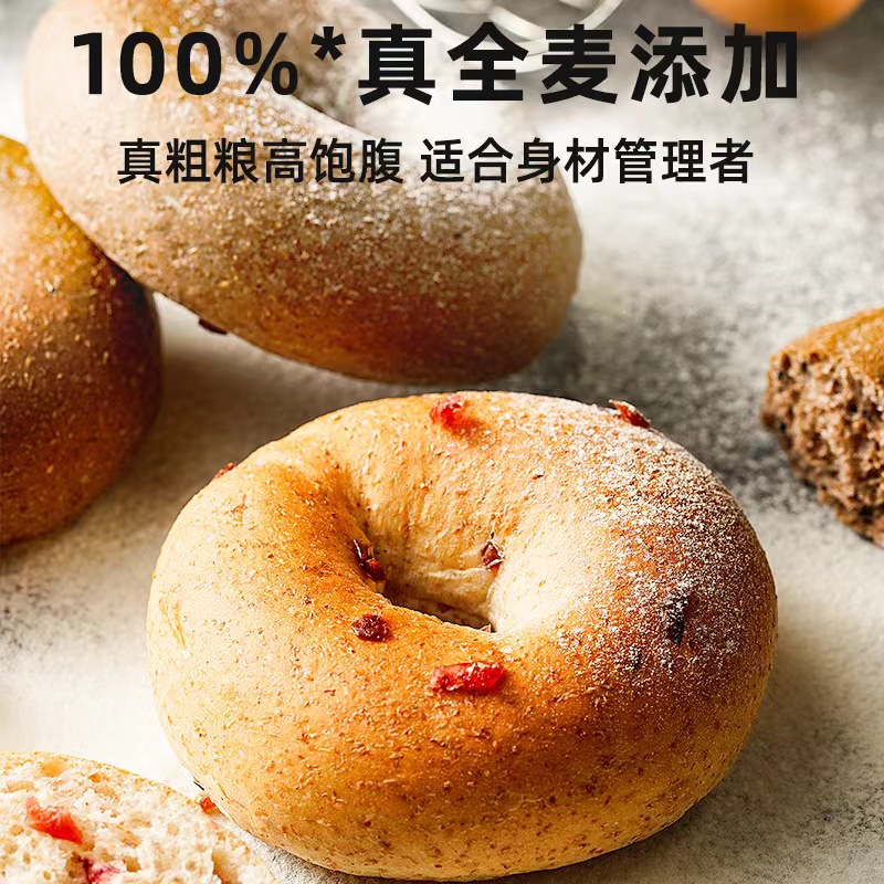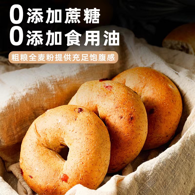 康泉 全麦蔓越莓贝果低无糖精零食脂品代餐面包整箱饱腹营养早餐