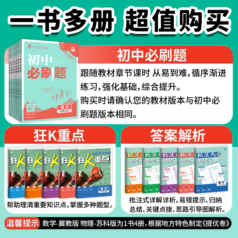 历史地理生物道德与法治人教版 语文英语外研版 教材同步中学教辅资料 初中必刷题七八九年级上册下册数学科学浙教版 浙江专用2026新版