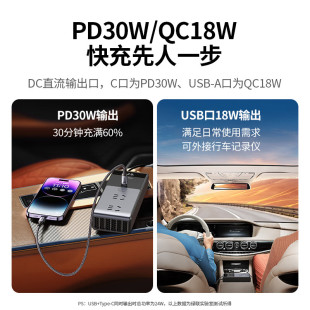 绿联车载逆变转换器12V转220伏汽车大功率快充变压插座车用充电器