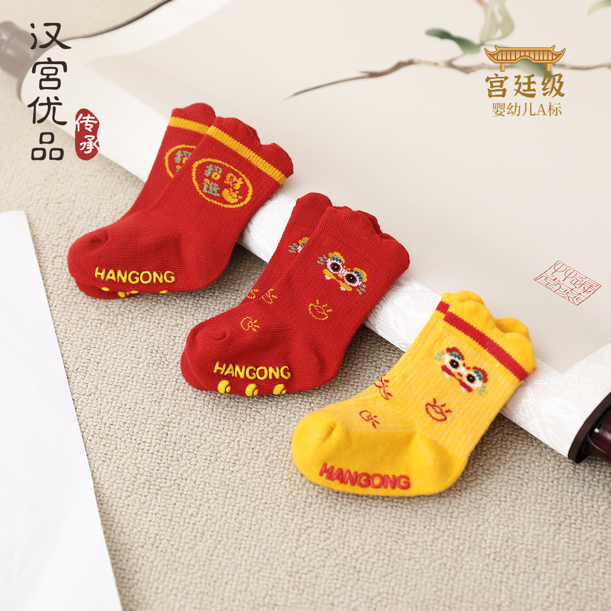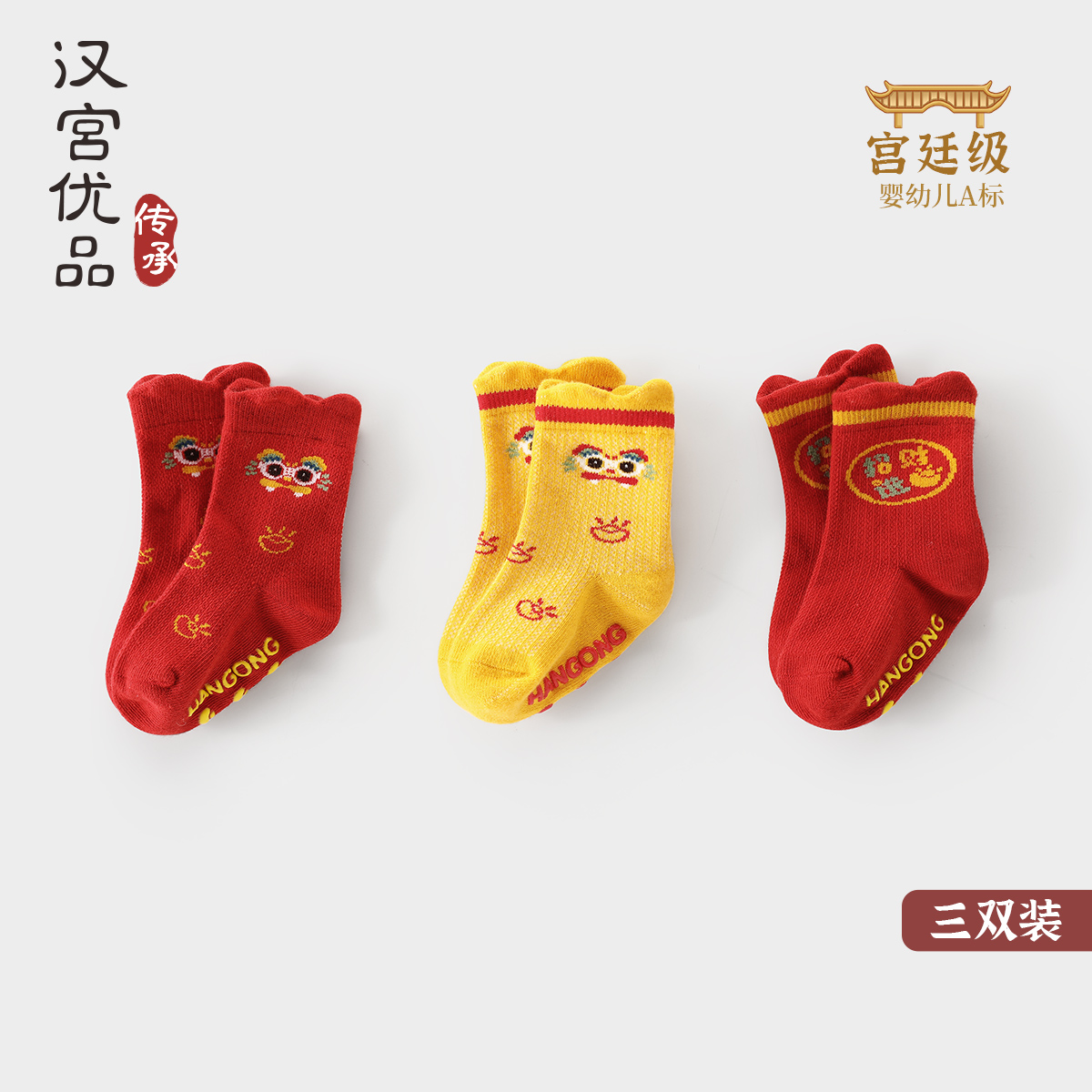 新生婴儿袜子秋冬红色满月百天周岁短袜儿童地板袜宝宝新年袜3双
