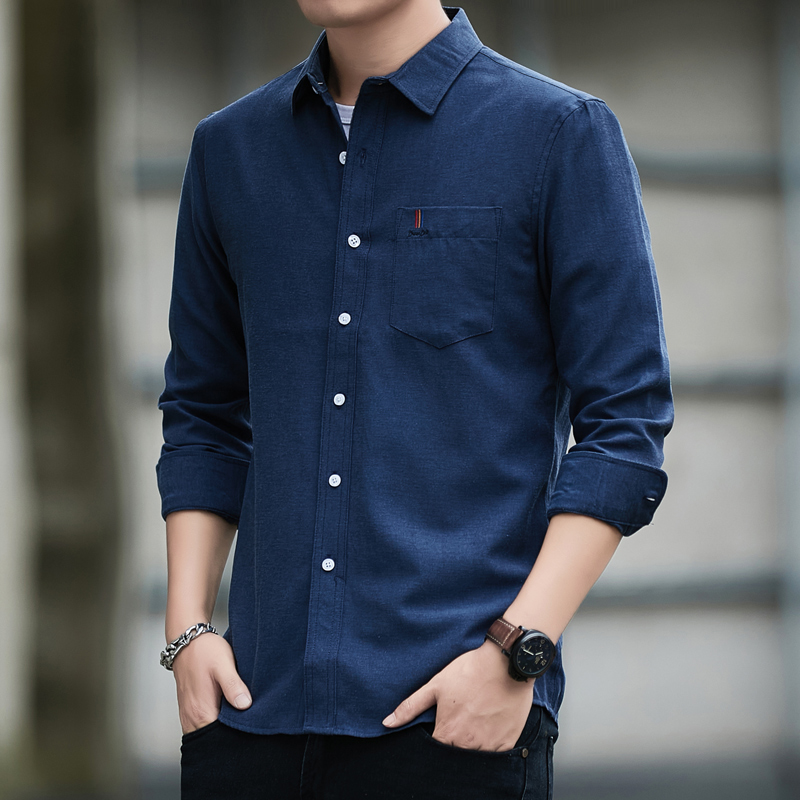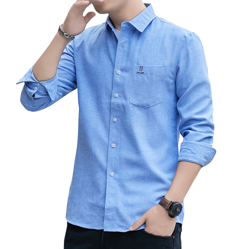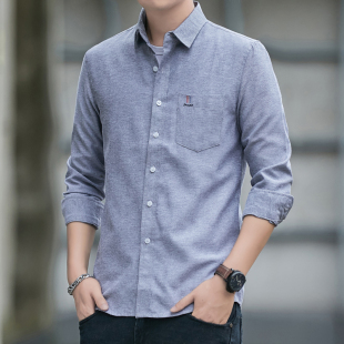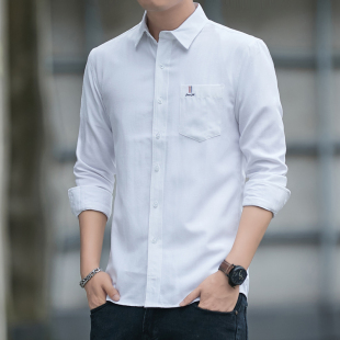 易打理牛津纺 棉质衬衫 Hazzys哈吉斯秋季 长袖 休闲纯色衬衣 男士
