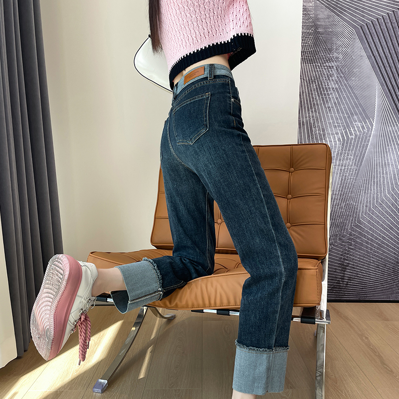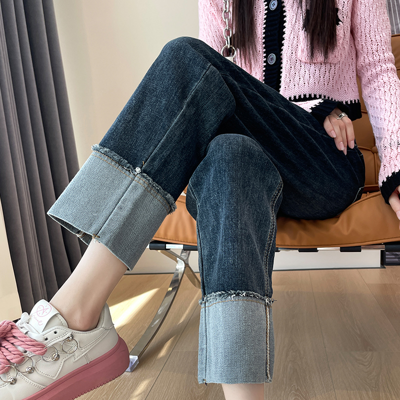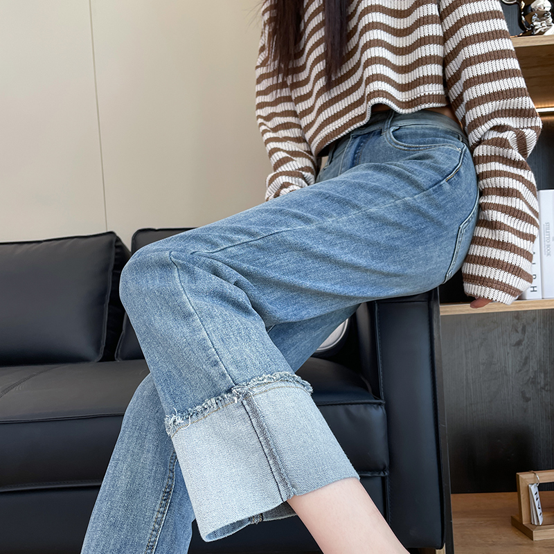 烟管裤 直筒牛仔裤 早秋高腰宽松显瘦浅色九分窄版 爆款 子 女2025新款