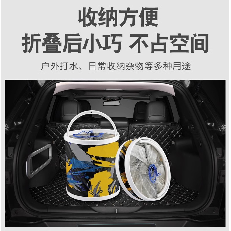 钓鱼可折叠打水桶装 鱼桶活鱼箱多功能带绳防跳网小鱼桶渔具鱼护桶