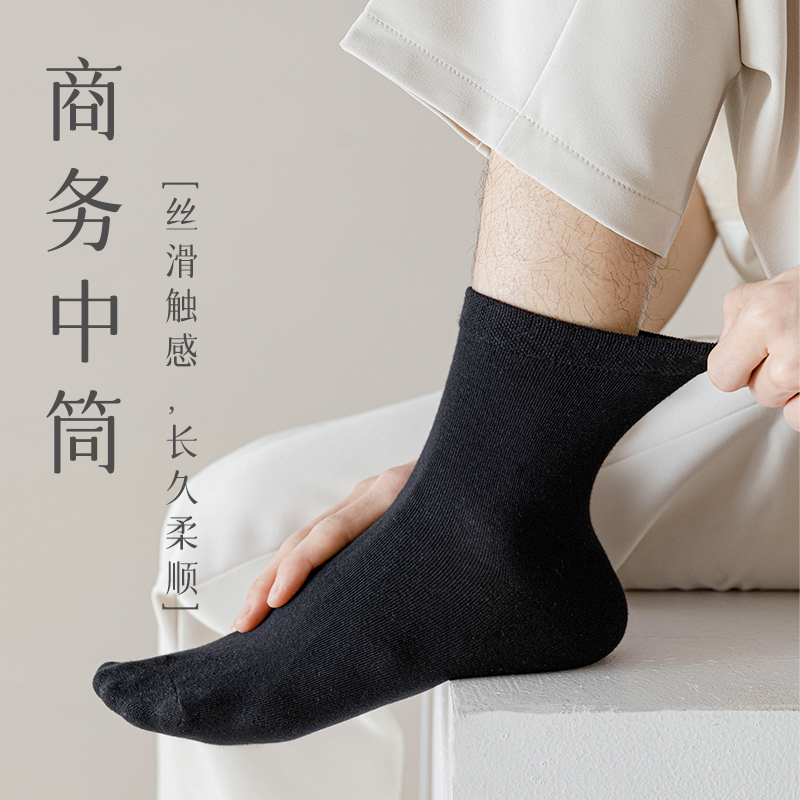 长袜黑色商务男袜 长筒袜春夏季 袜子男士 中筒纯棉防臭吸汗透气薄款