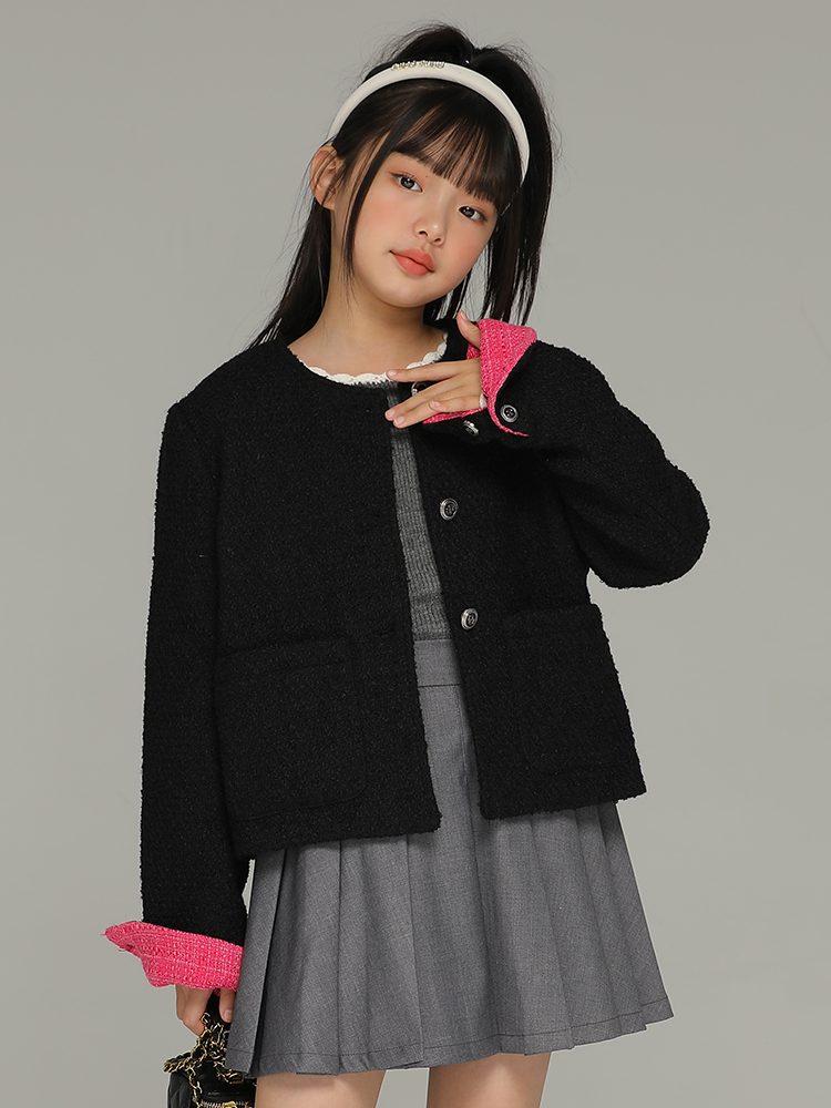小女森女童春秋法式 外套儿童高级感甜辣上衣潮 气质小香风撞色新款