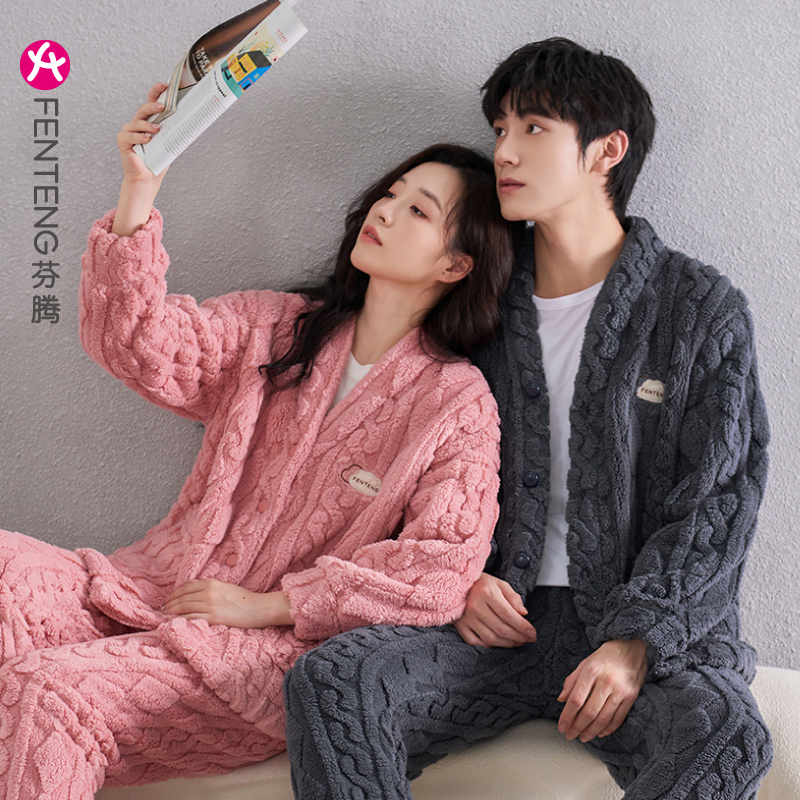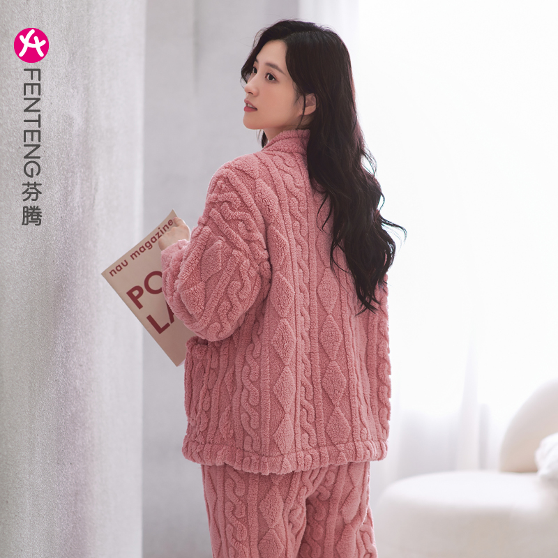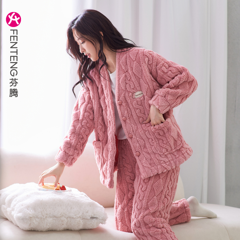加绒加厚保暖套装 冬季 可爱法兰绒家居服 秋冬款 芬腾珊瑚绒睡衣女款