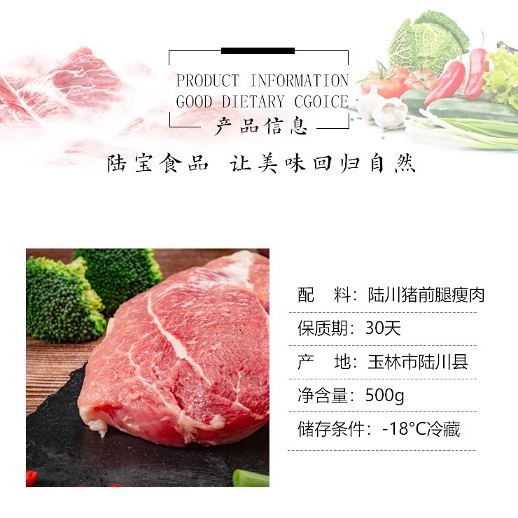 陆宝广西陆川土猪前腿瘦肉大里脊肉农家散养新鲜现杀土猪肉500g