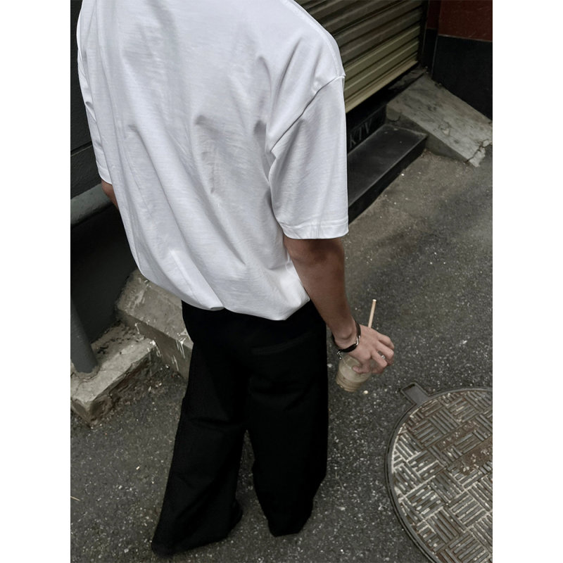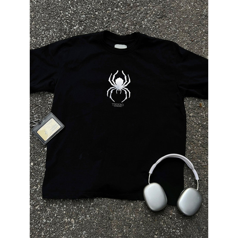 300g重磅欧美vibe高街t恤男小领口正肩短袖 设计感小众蜘蛛七分袖