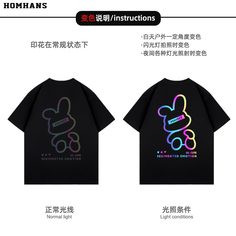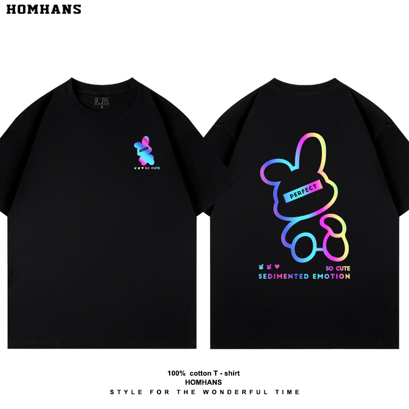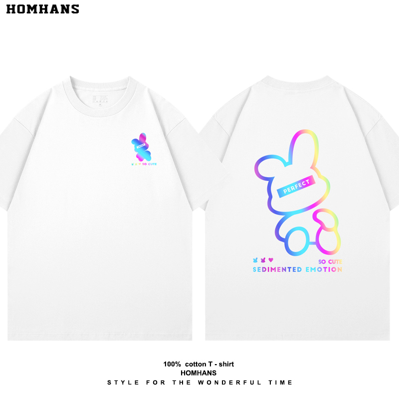 纯棉T恤夏装 可爱 国潮新款 炫彩印花短袖 男女亲子儿童 小兔子个性