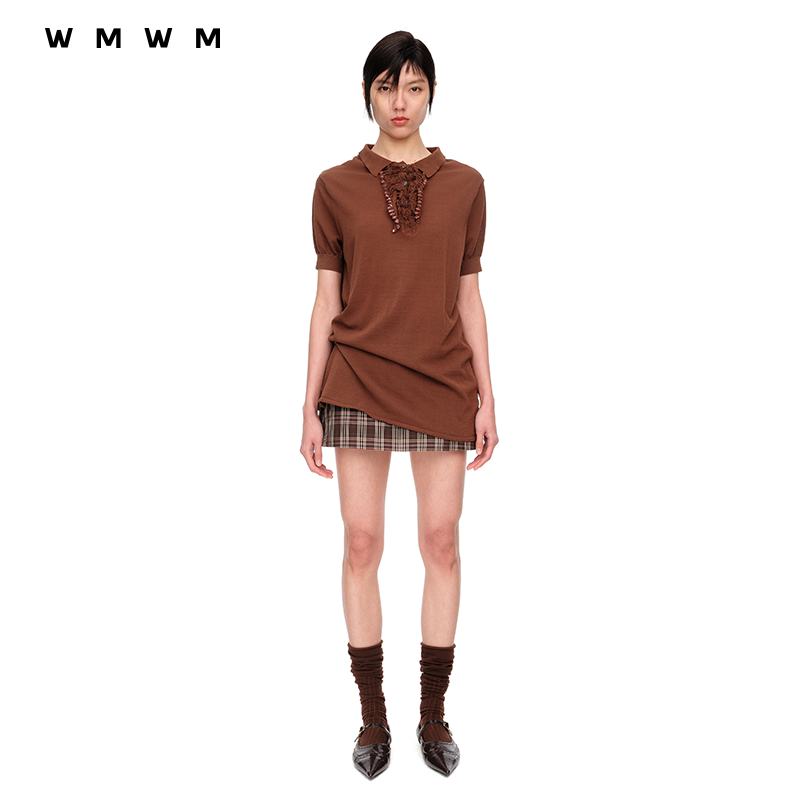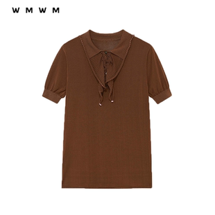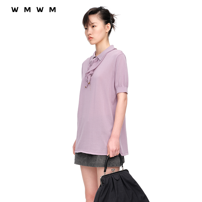 修身 森马POLO衫 复古辣妹夏季 设计感绑带美式 印花上衣小心机 女短款