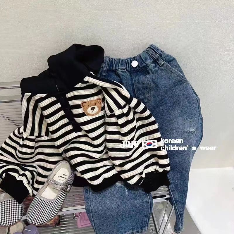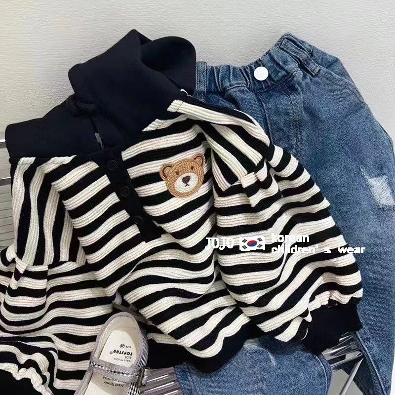 宝宝衣服男孩春季 儿童春装 帅条纹上衣潮 2025新款 男童卫衣春秋款