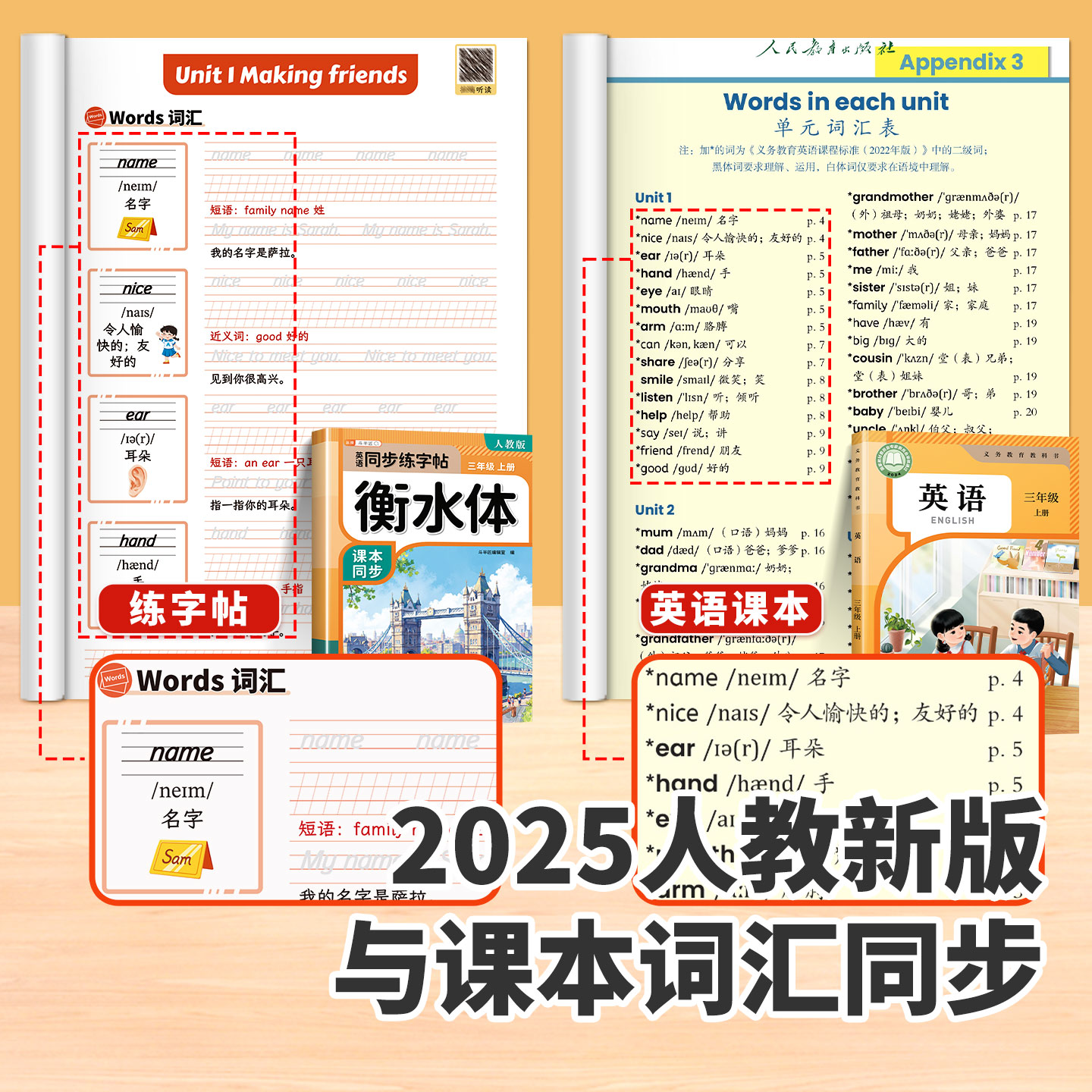 2025新小学衡水体英语字帖人教版 练习字帖pep英文单词作文26个字母练字 三年级四年级五六年级上册练字帖三上同步四上小学生专用