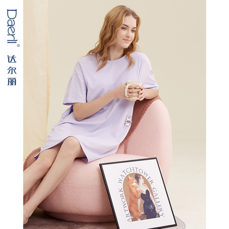 圆领套头短袖 2024新款 自带胸垫薄女士睡衣 女款 达尔丽纯棉睡裙夏季
