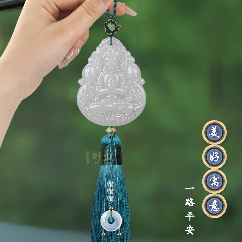 和田玉观音汽车挂件高端大气上档次车载饰品2025新款 后视镜吊坠女