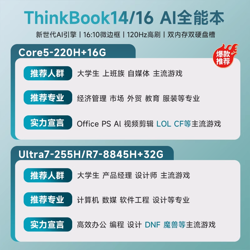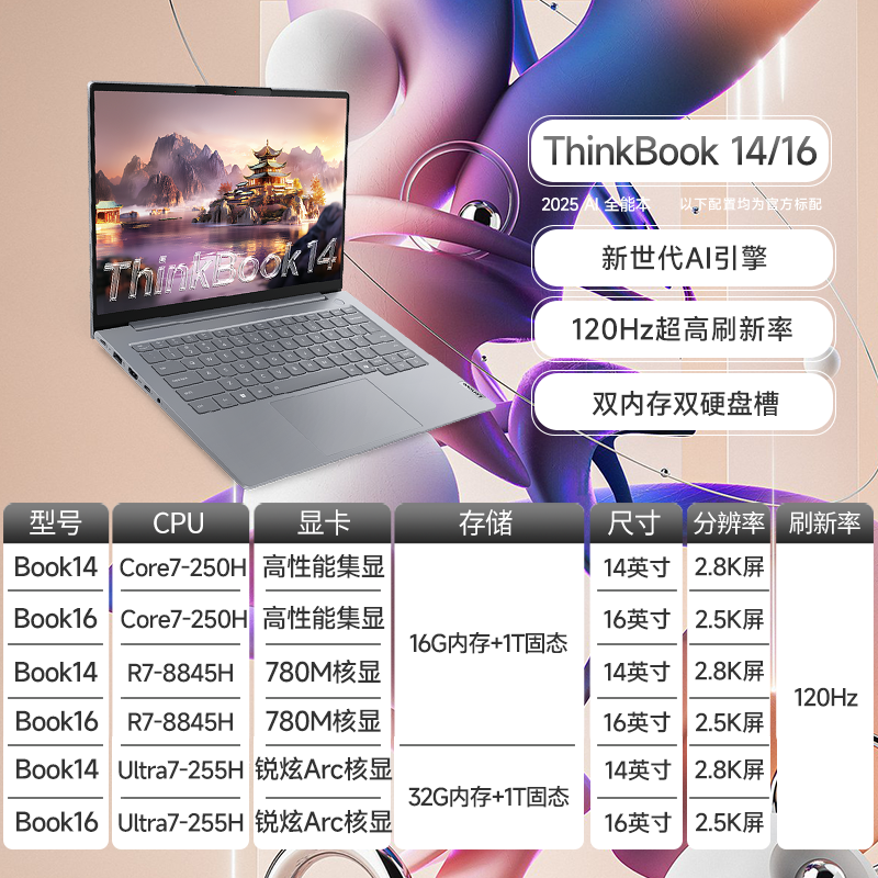 2025新款 酷睿Ultra5 联想ThinkBook RTX5060 商务办公学生独显轻薄游戏笔记本电脑ThinkPad