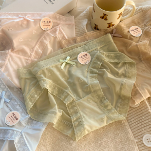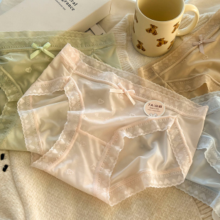 女中腰裸感三角内裤 甜美纯欲高开叉性感网纱内裤 7A抗菌纯棉裆