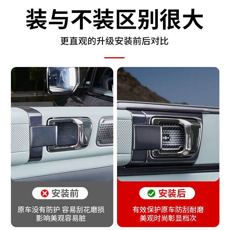 适用方程豹5滴胶碳纤内门碗贴豹8车内防护防刮门把拉手改装 保护贴