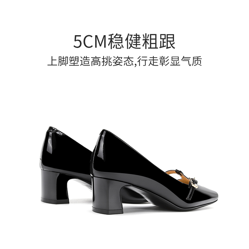 通勤方头粗跟一脚蹬纯色女鞋 哈森单鞋 法式 款 HS247001 女春季
