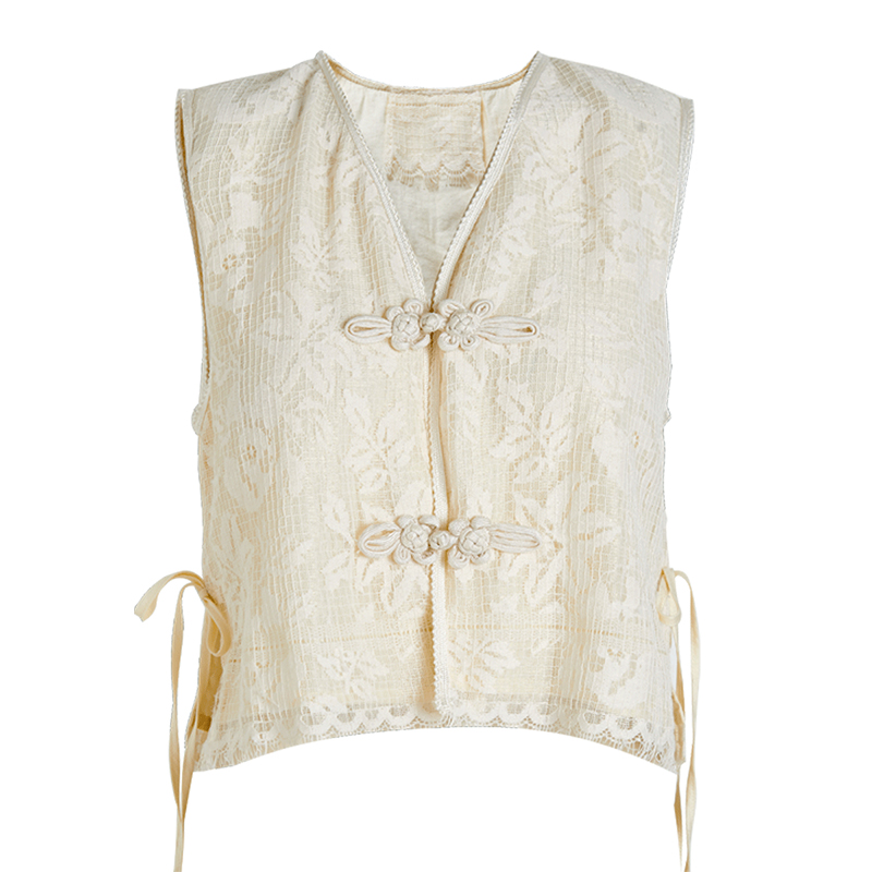 镂空花边纽扣针织衫 秋天叠穿马甲 吊带背心女内搭上衣外搭独特罩衫