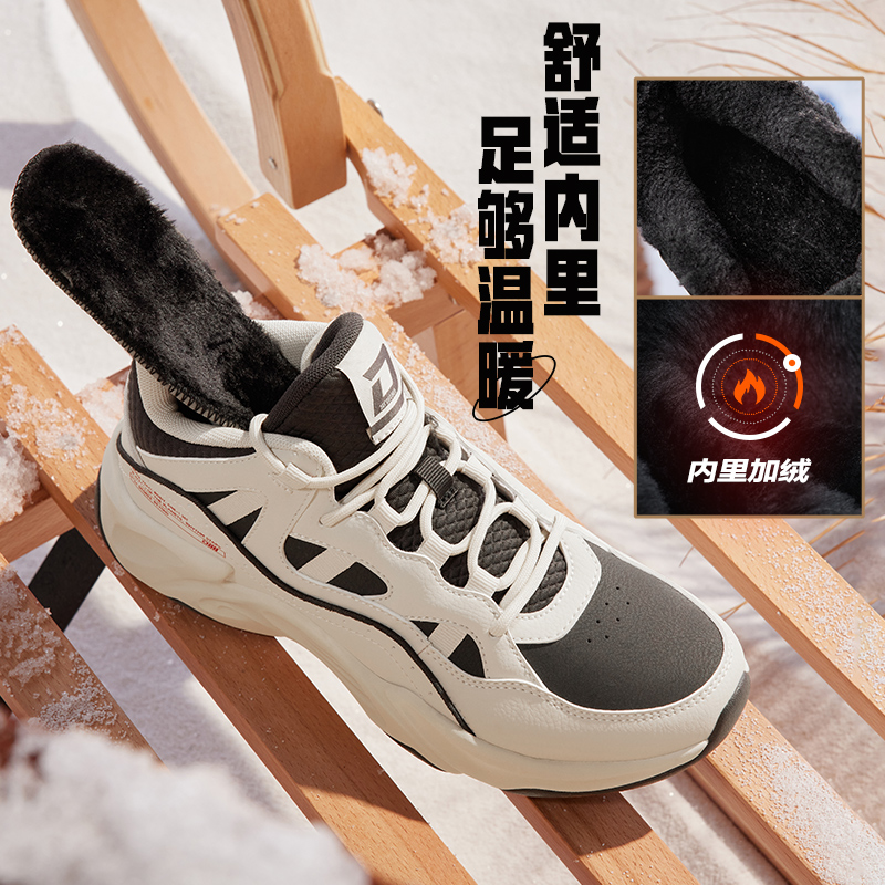 皮面防水女鞋 361度秋季 加绒加厚2025年黑色高帮老爹鞋 女款 运动鞋