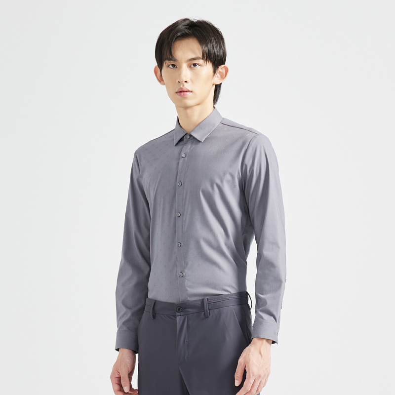 休闲基础舒适通勤商务长袖 秋季 翻领衬衣上衣1243933 衬衫 HM男装