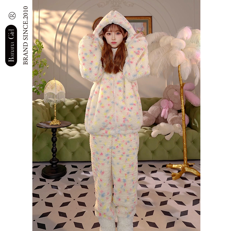 Bananagirl睡衣冬季 连帽女士可外穿家居服套女 女加绒加厚2024新款