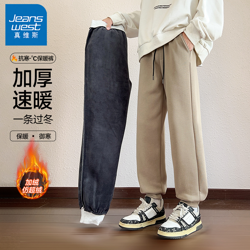 子男士 黑色加厚裤 男款 冬季 GV真维斯加绒运动裤 休闲卫裤 男秋冬款