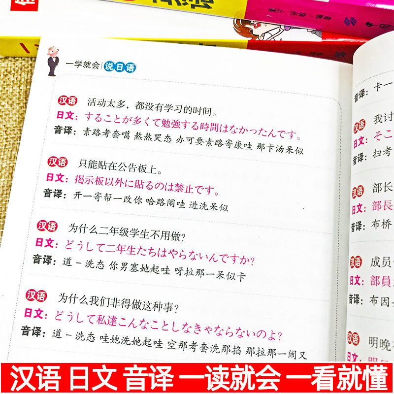4册一学就会说英语日语韩语俄语书籍日常交际英语情景口语中文谐音会中文就会英语口语场景对话知识大全初学零基础入门自学口袋版
