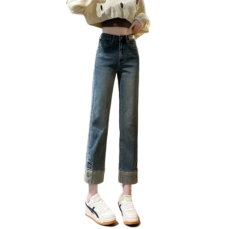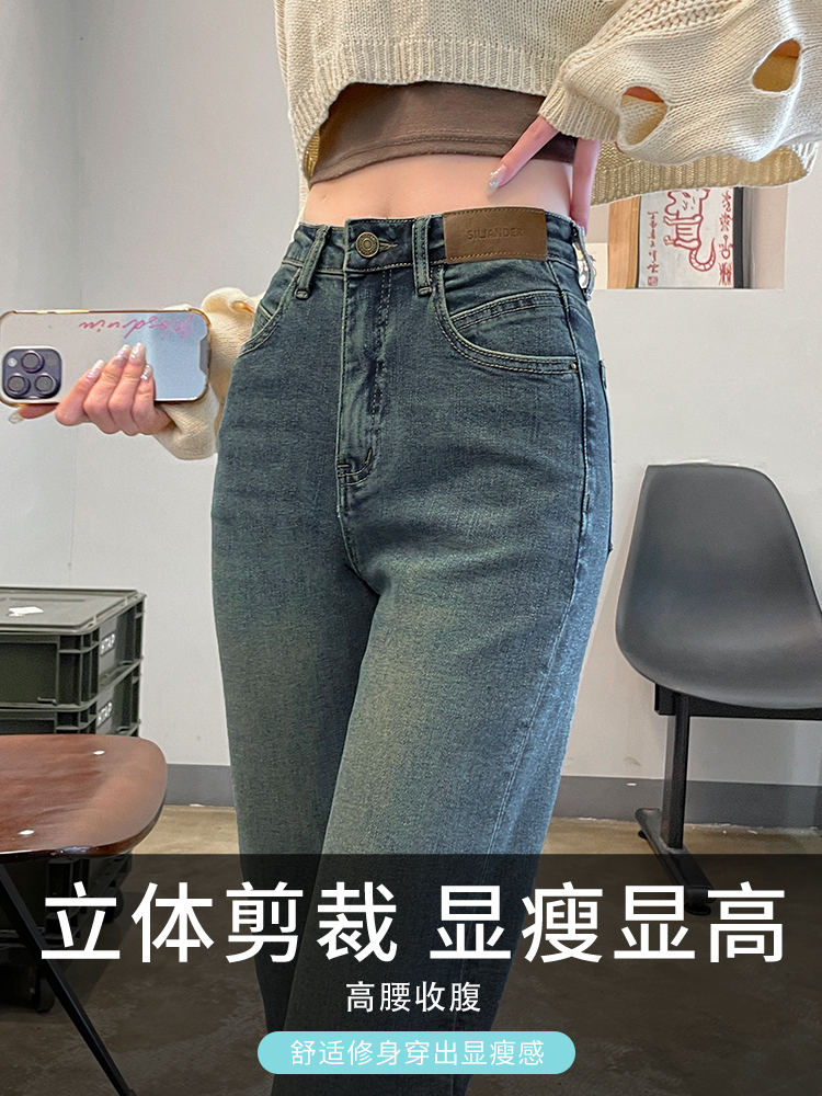 直筒裤 加绒烟管牛仔裤 卷边九分小个子高腰窄版 爆款 女秋冬2025新款