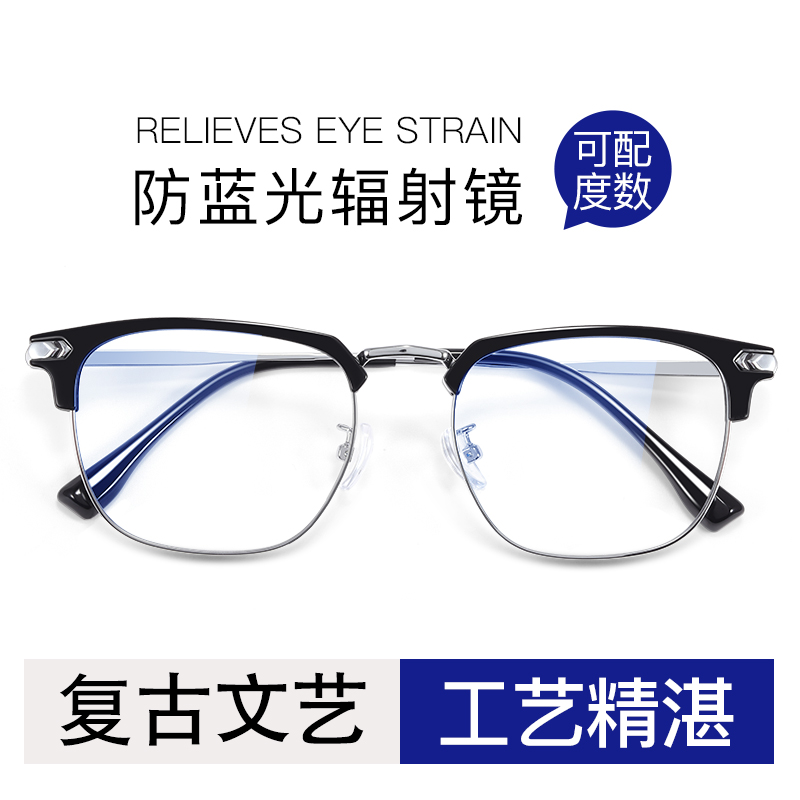 童锦程同款 半框眼镜男可配近视度数防蓝光超轻痞帅斯文败类眼睛架