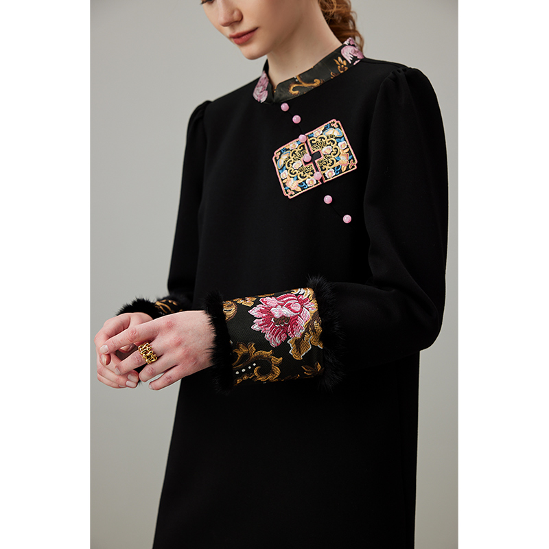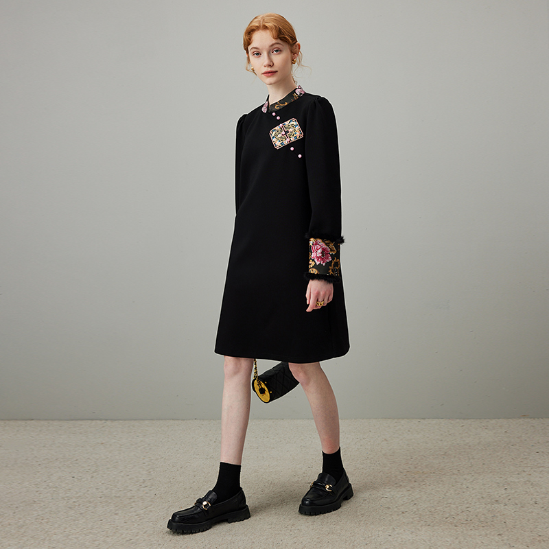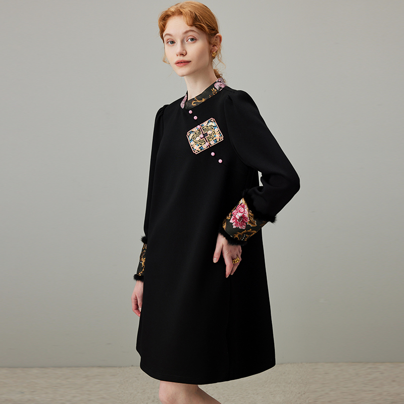 秋绵羊毛假两件连衣裙鱼尾裙 珂莱蒂尔2025新款 免定金