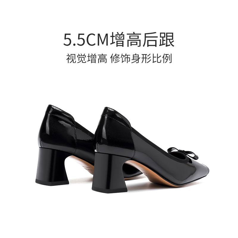 瓢鞋 方扣红色单鞋 百思图25秋新款 粗跟浅口女平底婚鞋 丝绒玫瑰