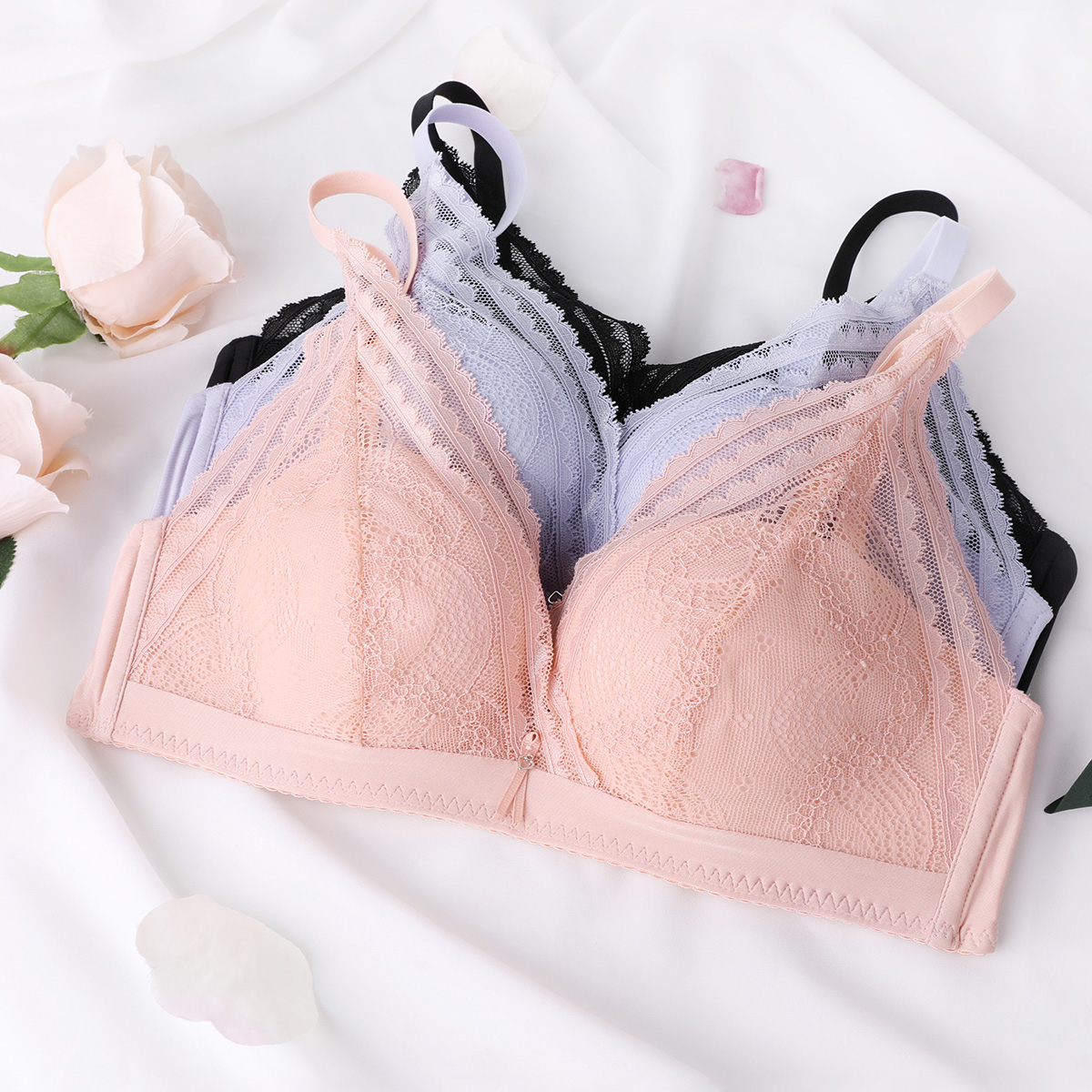 上托文胸无钢圈内衣 安莉芳官方奥莱安朵性感蕾丝中厚款 立挺杯