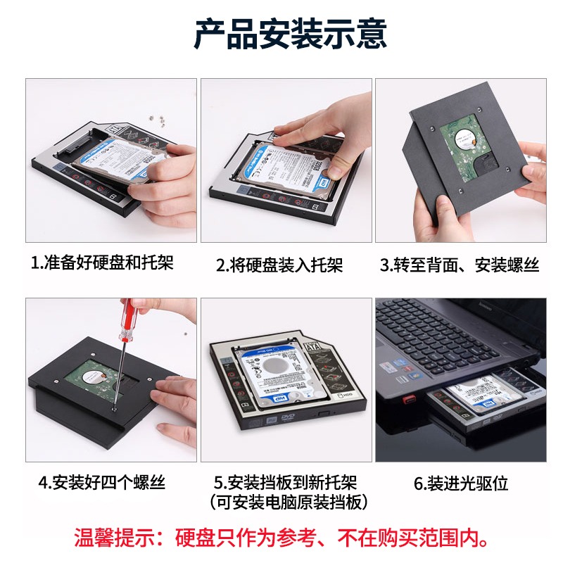 华顾笔记本光驱位硬盘托架9.5 12.7mm机械固态硬盘SATA全兼容铝合金款