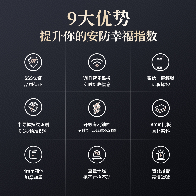 箱指纹床头柜办公室2025新款 大一保险柜家用加厚加重原3C认证防盗保险箱存钱密码 沙溢代言新国标SSS认证