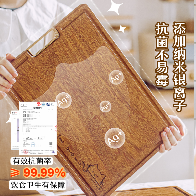 双枪整木乌檀木菜板防霉抗菌家用切菜板实木砧板案板厨房专用砧板