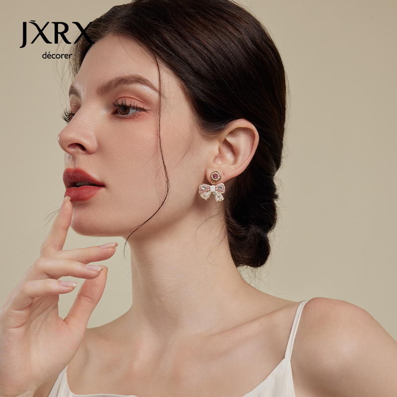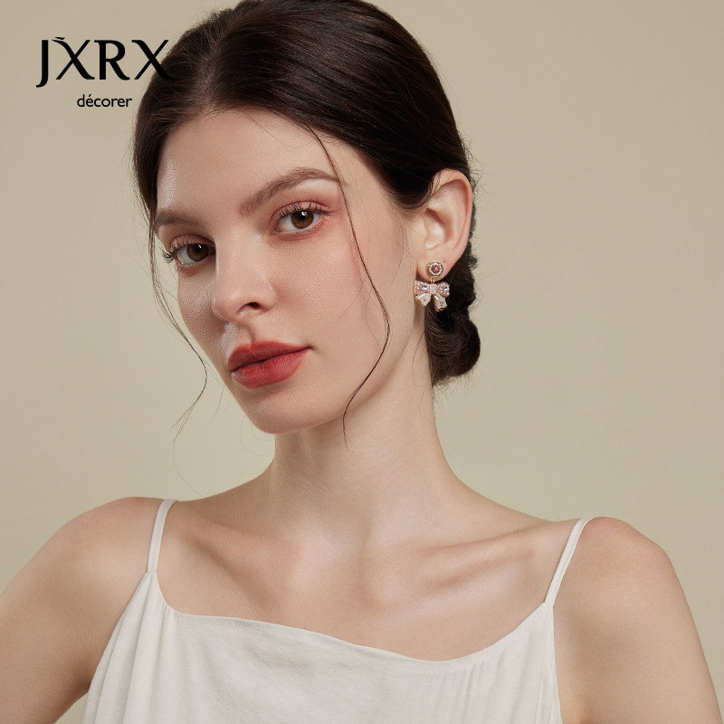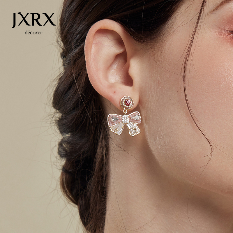 JXRX粉色水晶蝴蝶结耳环女轻奢高级感耳钉2025新款 耳饰 适合春天