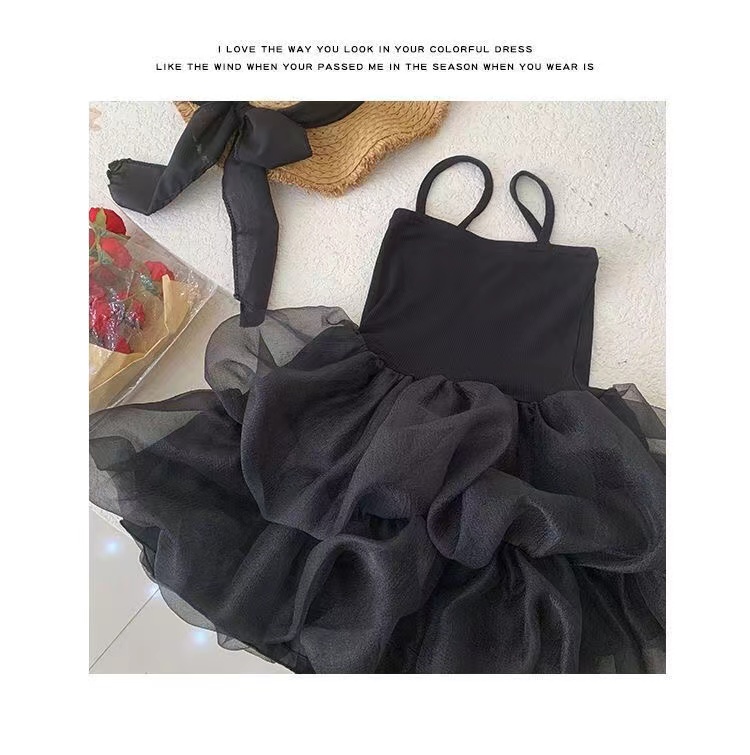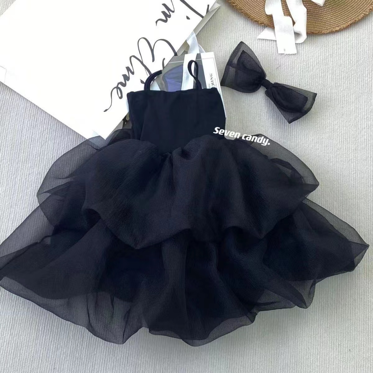 女童小黑裙夏款 洋气小女孩吊带裙女宝宝网纱蓬蓬裙儿童礼服公主裙