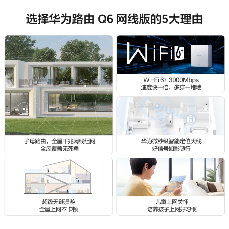 一拖三 网线版 AC面板AP套装 千兆网口家用无线路由器大户型 1母3子全屋wifi覆盖mesh组网 华为凌霄子母路由