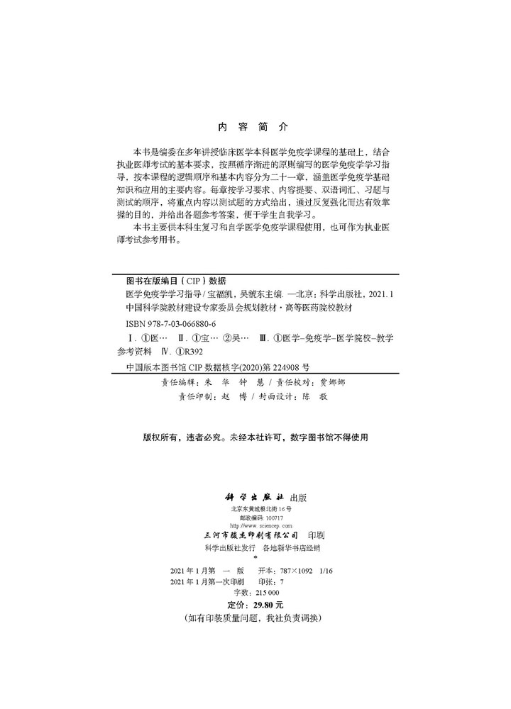 社 吴虢东科学出版 医学免疫学学习指导 宝福凯