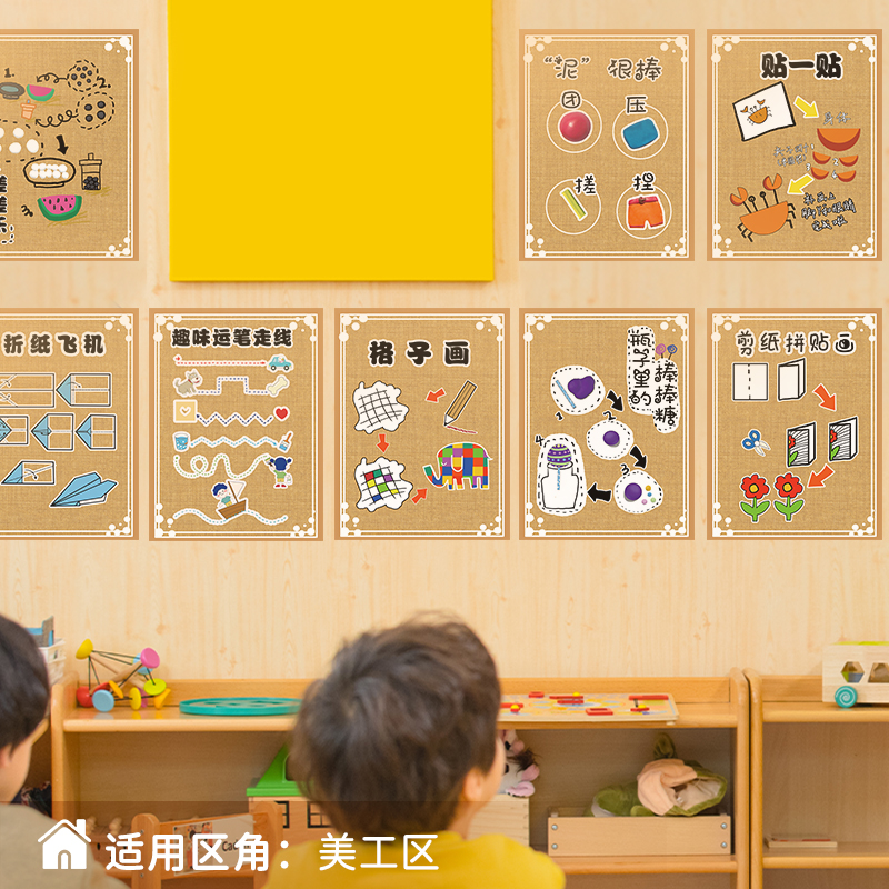 幼儿园美工区环创操作步骤墙面装 饰线描画背胶写真纸折纸涂色颜色
