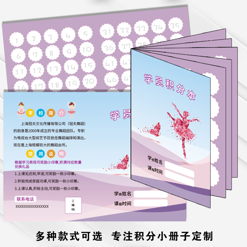 积分本定制培训班学员奖励记录小册子打印制作订做儿童小学生对折积分册卡通小印章双面存折本子集章卡加logo