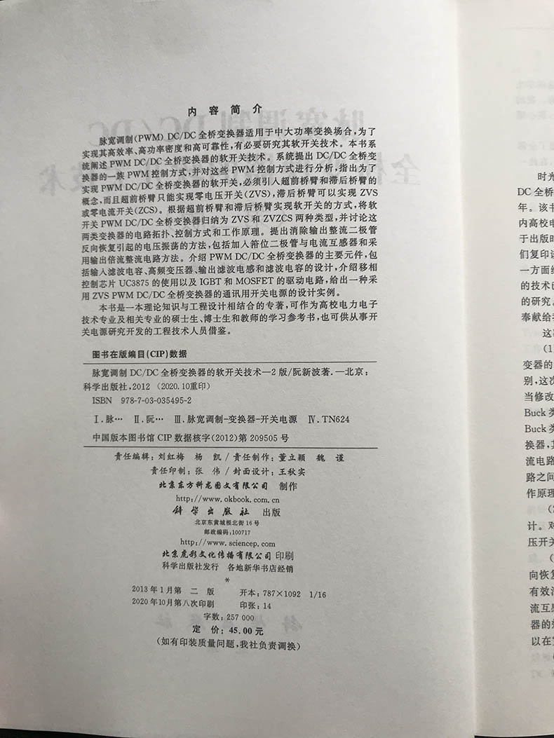 开关电源研究开发工技术书 脉宽调制DC 高校电力电子技术相关专业学习书 软开关技术第二版 9787030354952 DC全桥变换器