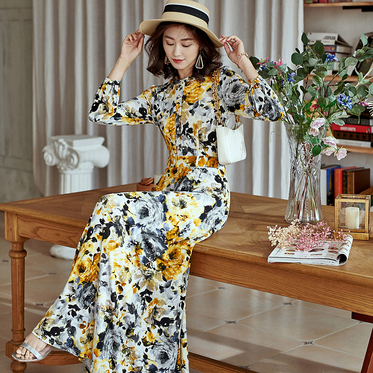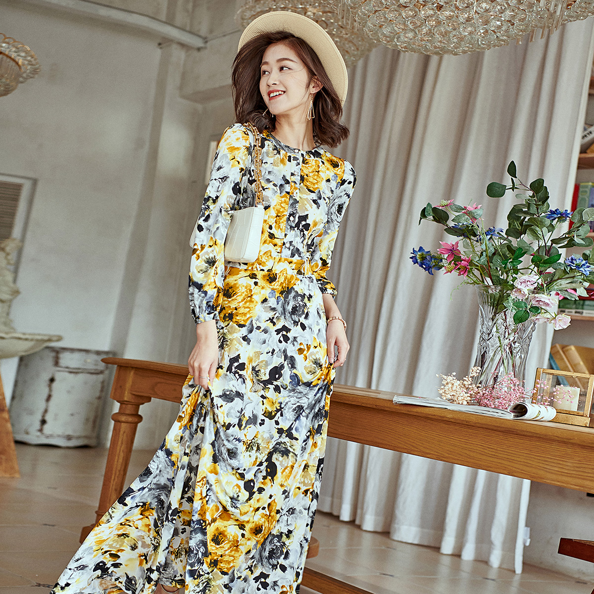 裙子高级感穿搭短裙 连衣裙荷叶边碎花裙长袖 sincethen法式 泡泡袖