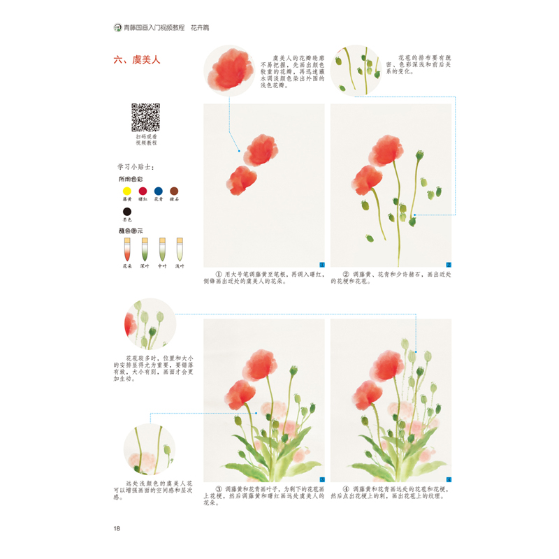 河南美术出版 青藤国画入门视频教程 图书 调色植物国画教程国画基础知识画法范例与讲解写生与课堂实践老师推荐 社 花卉篇