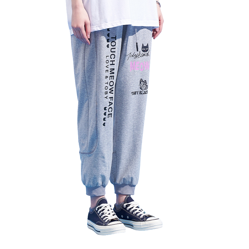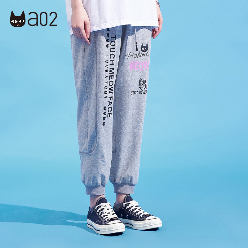 字母印花百搭宽松显瘦休闲裤 a02时尚 新款 夏季 潮酷原创哈伦裤