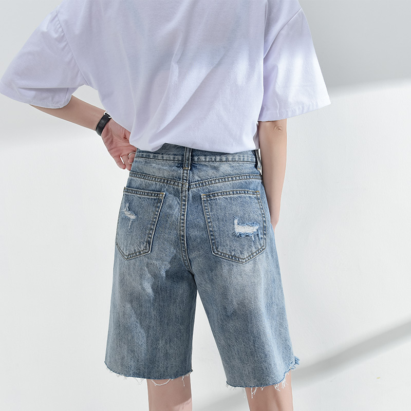 显瘦五分裤 破洞牛仔短裤 直筒宽松毛边中裤 2025新款 潮ins 女夏薄款